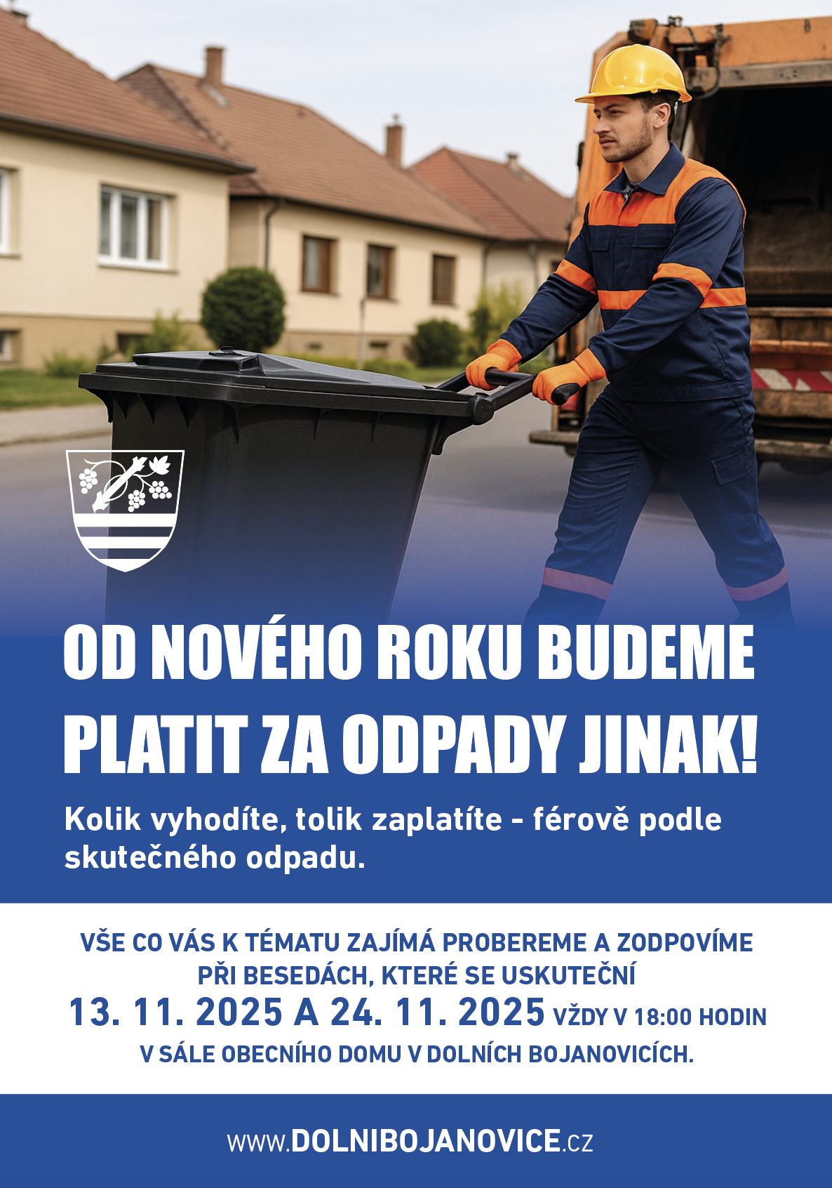 Zveme vás na informační besedu ke změně systému poplatku za svoz tříděného odpadu. Ta se uskuteční v pondělí 24. listopadu v 18:00 hodin v sále Obecního domu.